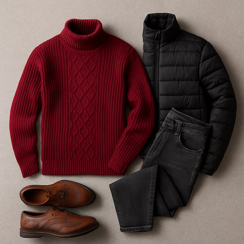 پلیوربافت مردانه یقه اسکی مدل Hakan-زرشکی